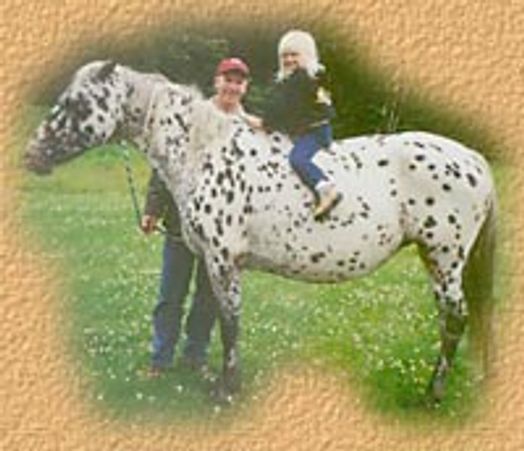 Tri-colored leopard stallion by Pratt's Toby Secret out of Ulrich Windsong. Has produced beautiful offspring. I still have Neemeepoos Tetonia by him.